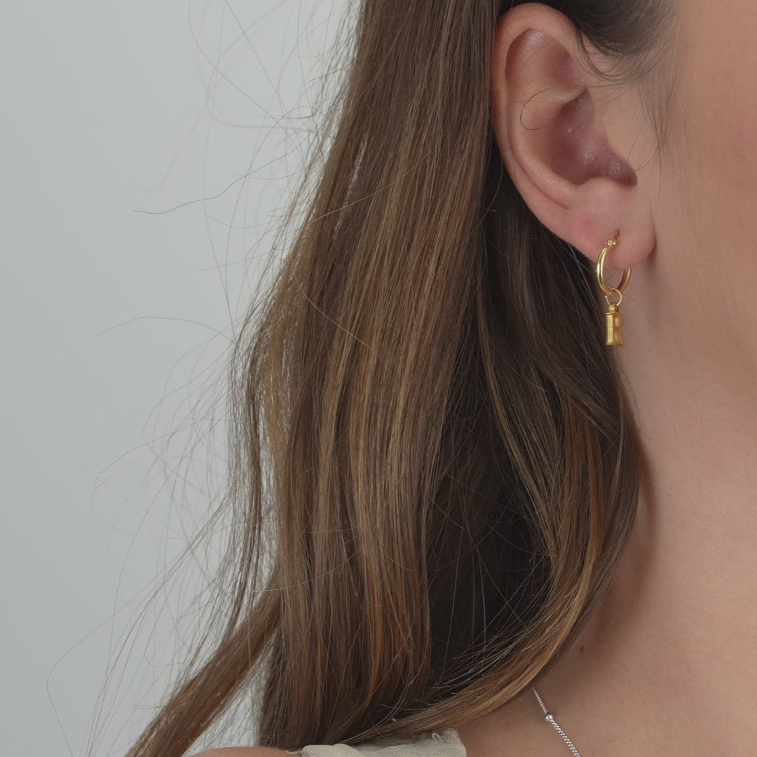 Personalised Initial Letter Drop Earrings in sterling silver, 18ct gold, or gold vermeil. Choose your favourite letters to create a pair that’s uniquely yours. You can mix and match the letters for each ear; the hoop metal stays the same as the option you select. Polished, lightweight and easy to wear every day.