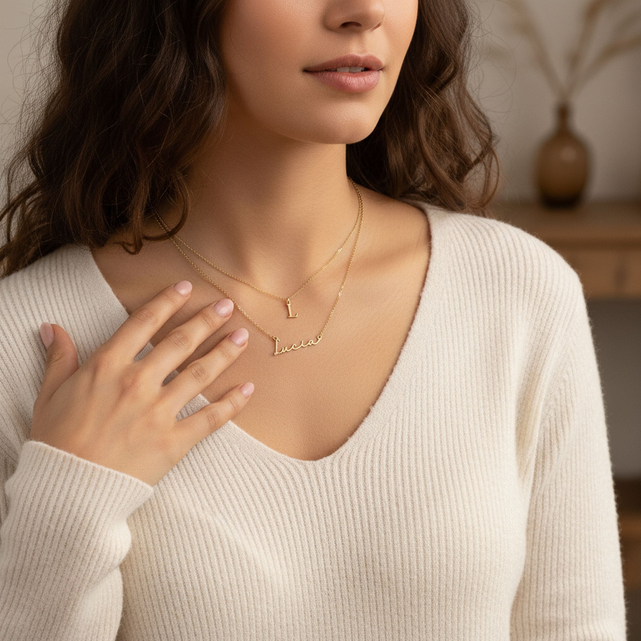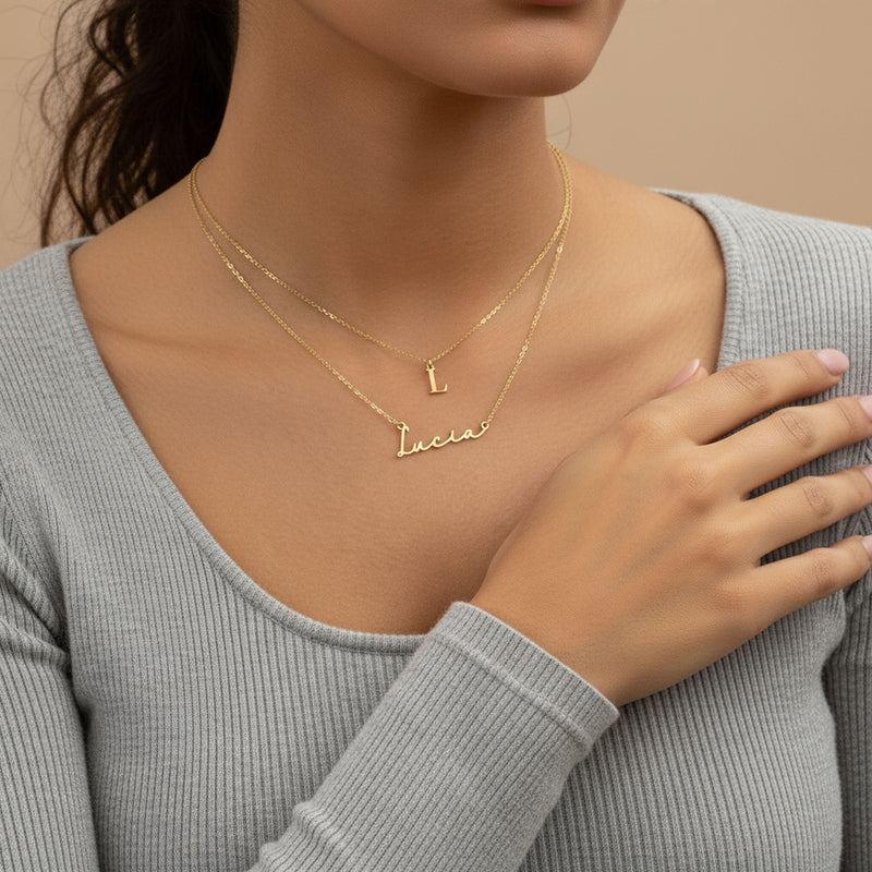 Personalised Name & Initial Necklace Layered Set of 2