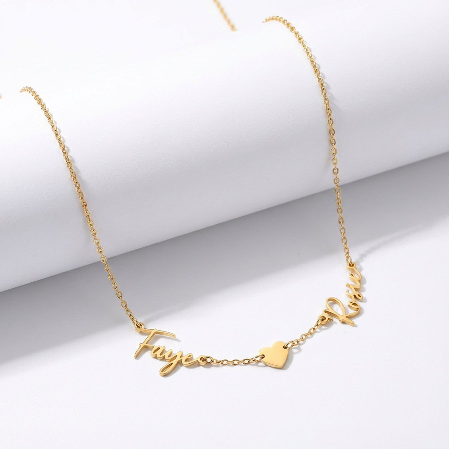 This beautiful double name necklace is designed to celebrate the people who matter most. Featuring two elegant script names joined by a polished solid heart, it’s a meaningful piece made for wearing close every day. Available in premium vermeil or solid silver, it’s a stunning keepsake with a luxury finish.