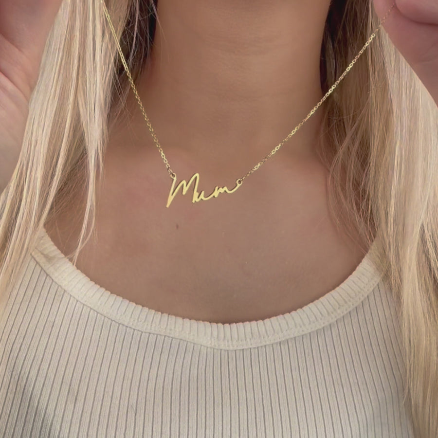 Mum Necklace – a beautiful everyday piece that says it all. This elegant script necklace spells out “Mum” in flowing cursive, capturing warmth, love, and appreciation in a timeless keepsake. Perfect as a heartfelt gift for birthdays, Mother’s Day, or just because, it’s a piece she’ll treasure every day.