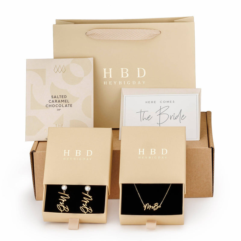 - Option 2: Matching "Mrs" earrings + salted caramel chocolate