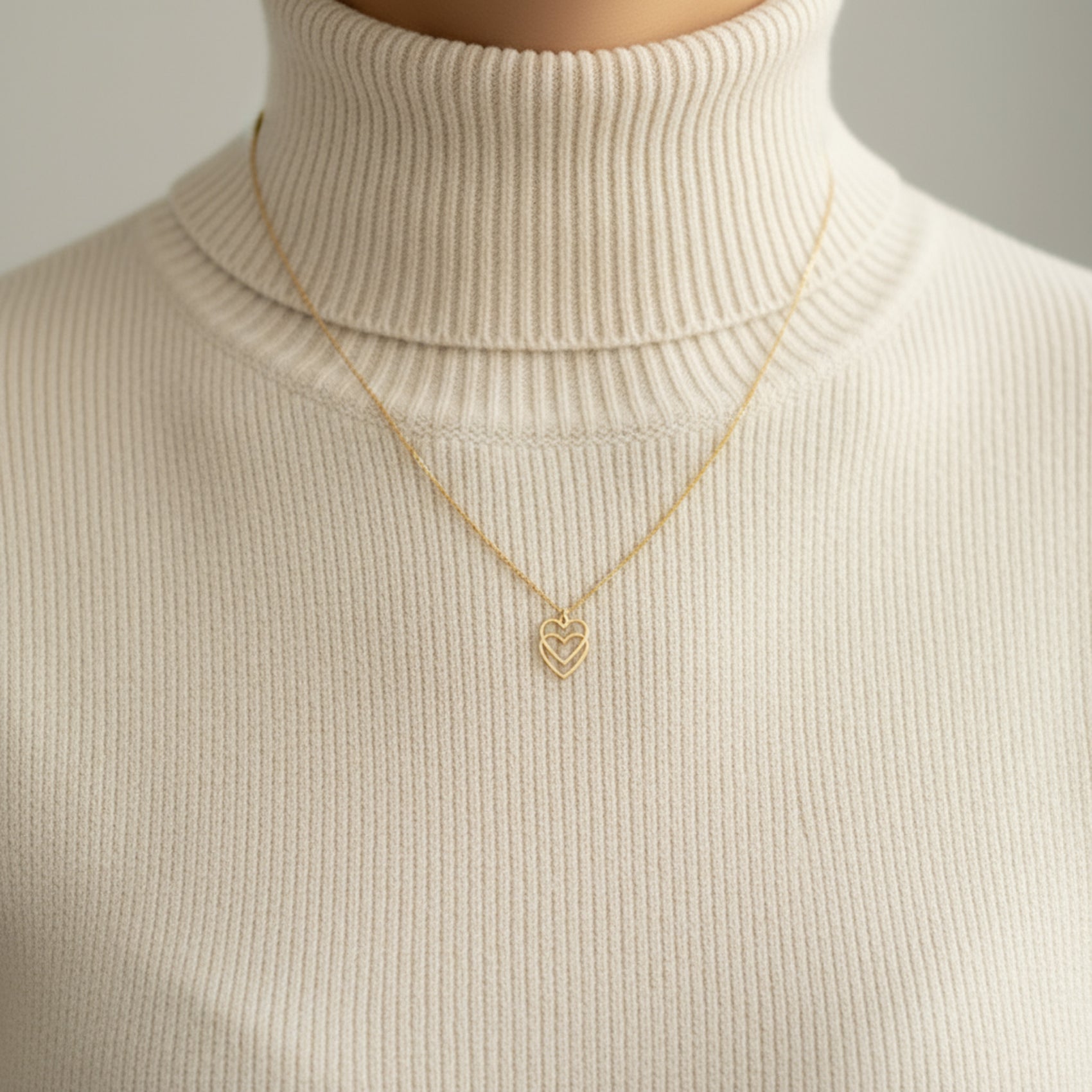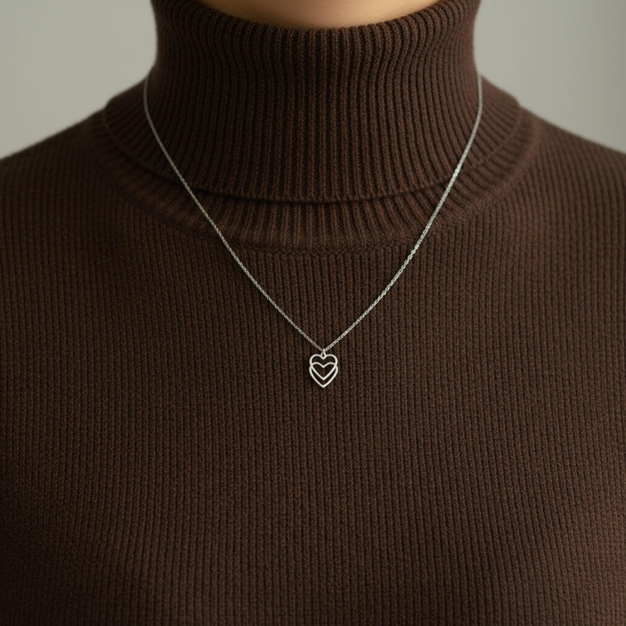 This Double Heart Necklace captures the perfect balance of simplicity and sentiment. The elegant outline design features two interlinked hearts, symbolising love and connection – a timeless piece that complements any outfit from everyday wear to special occasions.