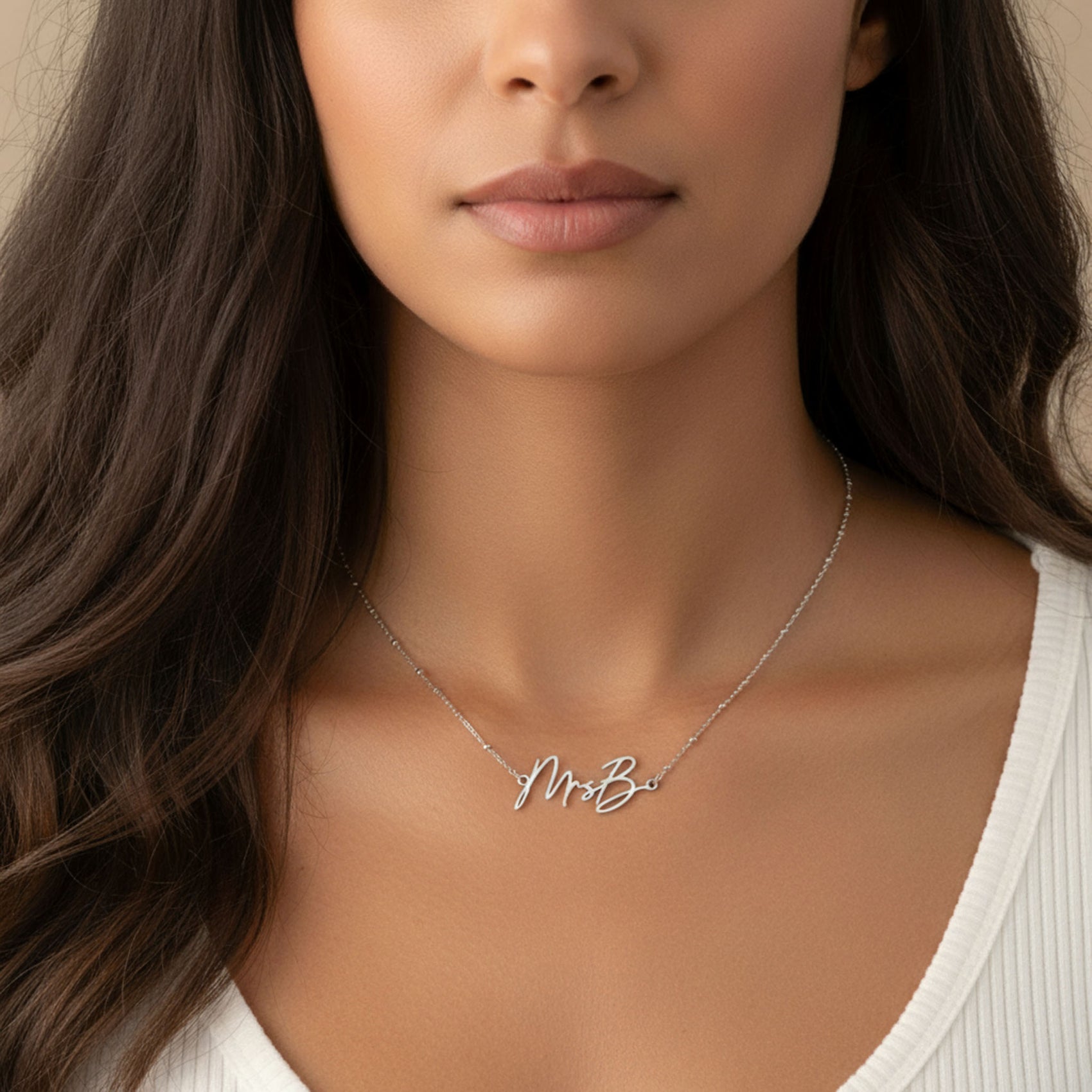 Celebrate a marriage, anniversary, or the special Mrs in your life with a personalised Mrs necklace – a meaningful keepsake made just for her.