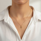 Our classic vertical cross necklace is a timeless piece, available in three cross sizes so you can find the look that suits you best.