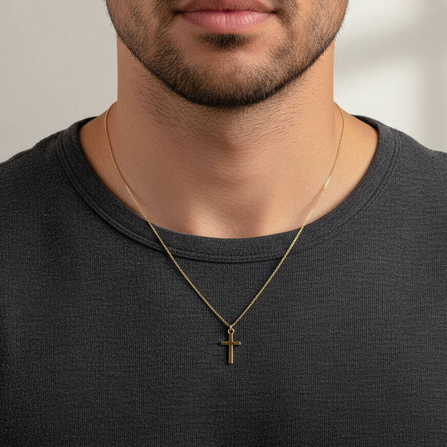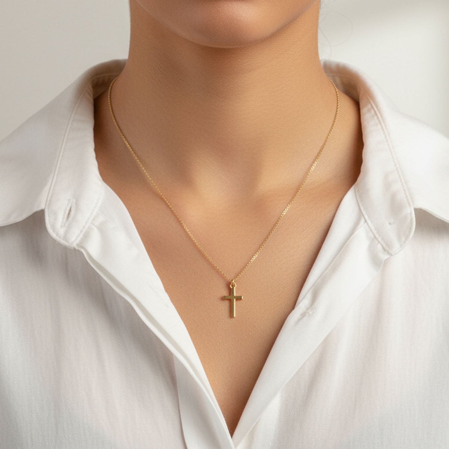 Complete the look by pairing it with our cross earrings – available in both hoop and stud styles – for an elegant matching set.